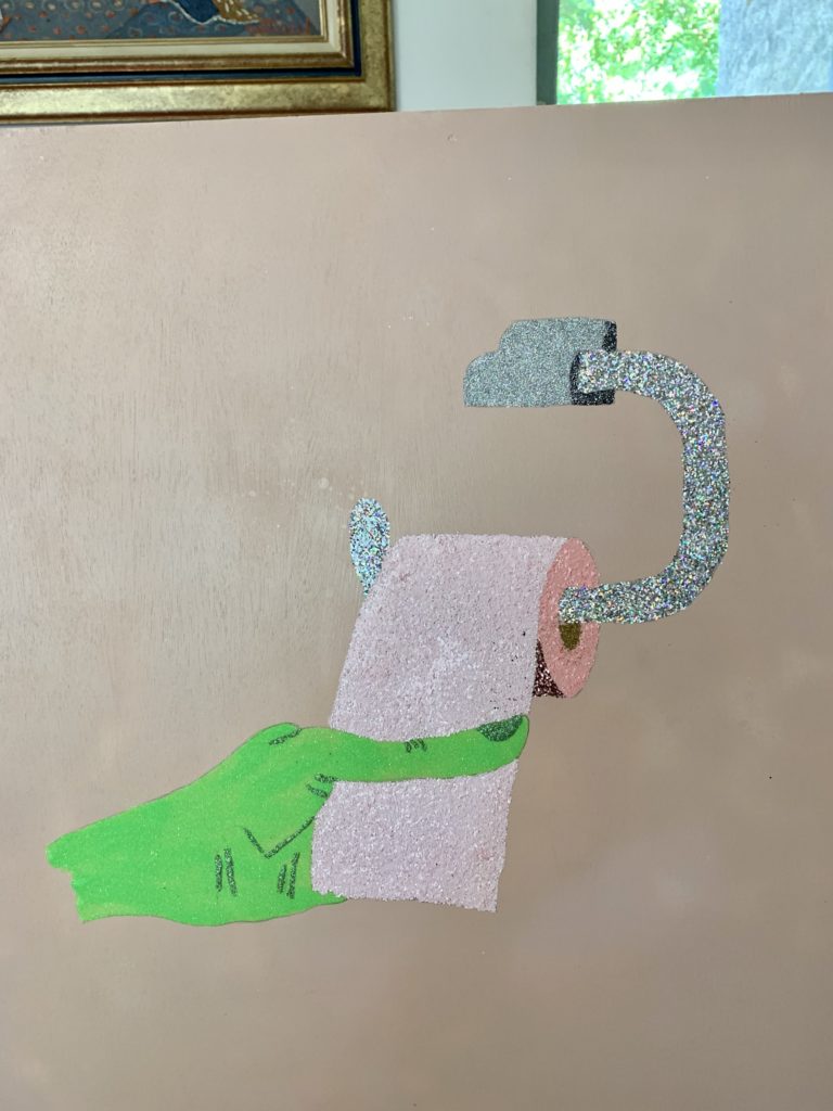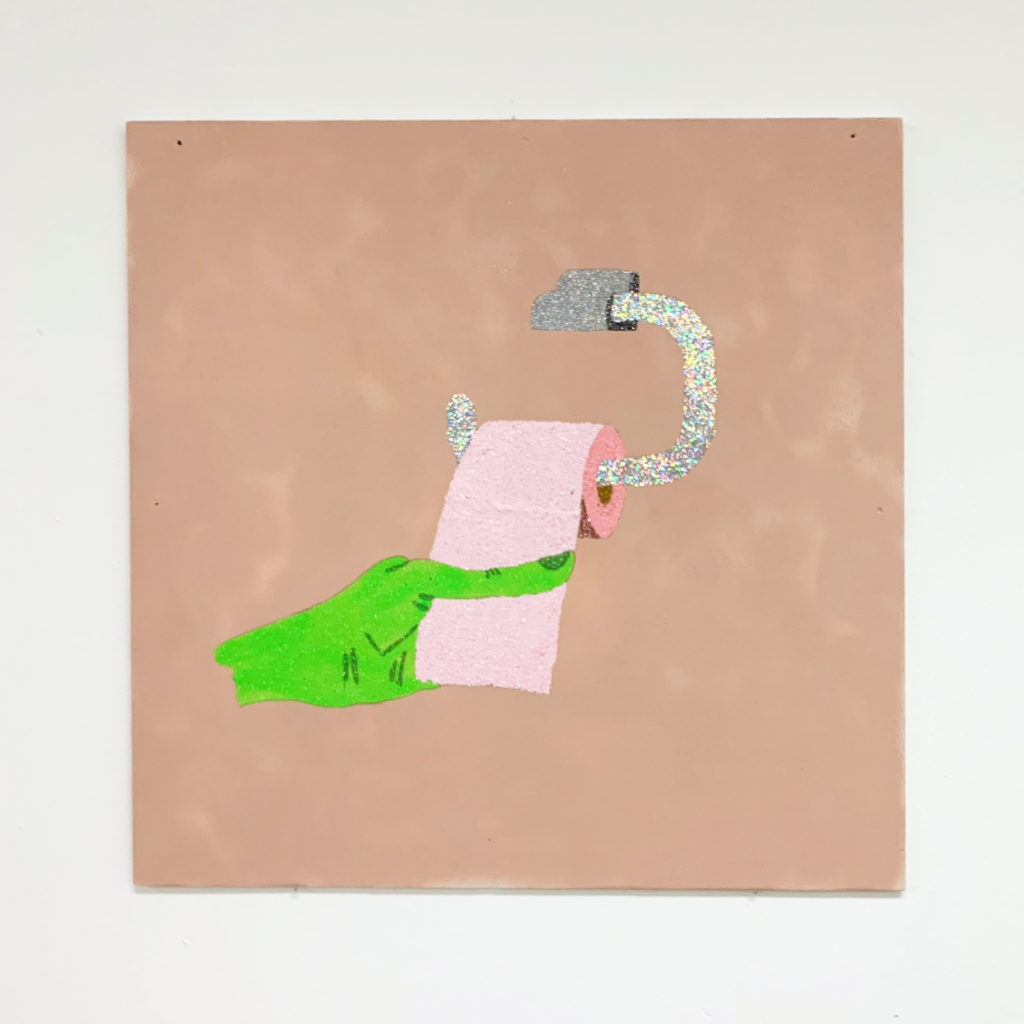 Au bout du rouleau, technique mixte sur panneau, 60 x 60 cm, 2019 :