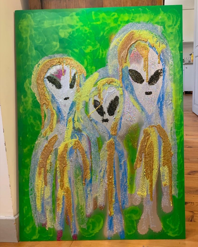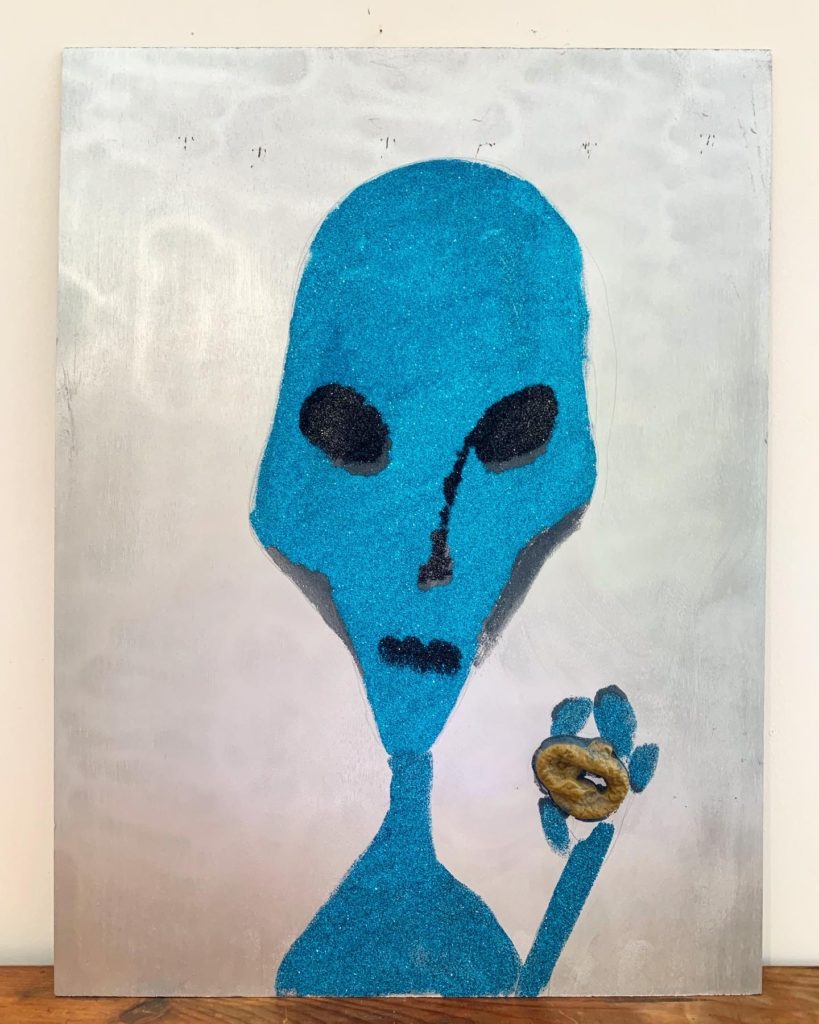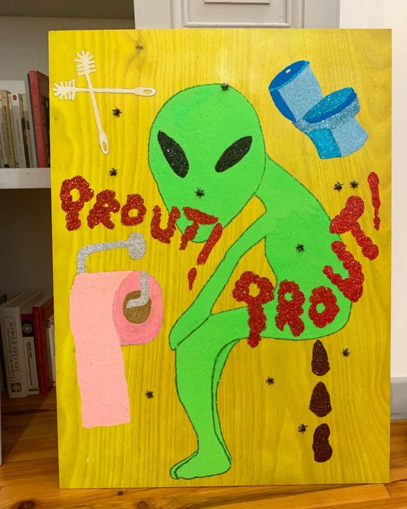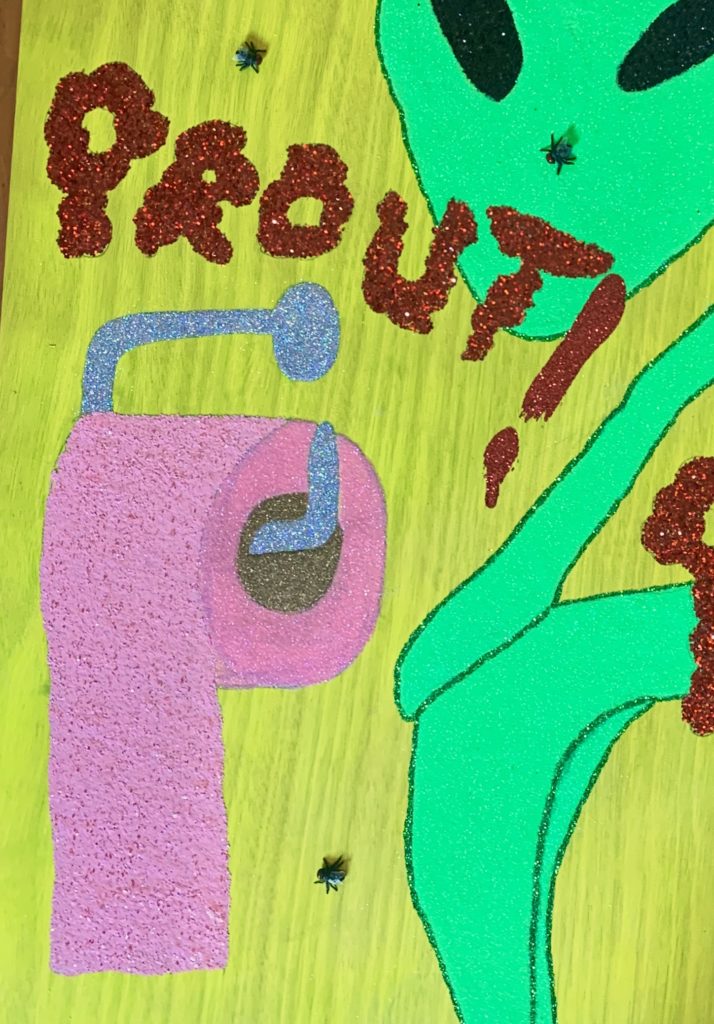 Alien Caca, technique mixte sur panneau, 80 x 60 cm, 2019 :