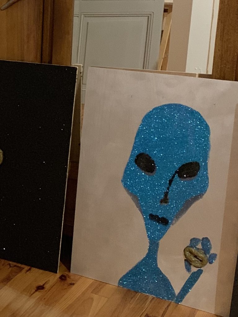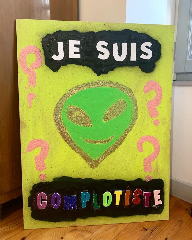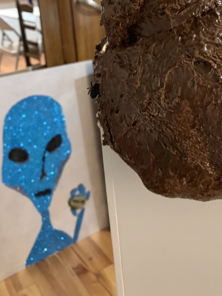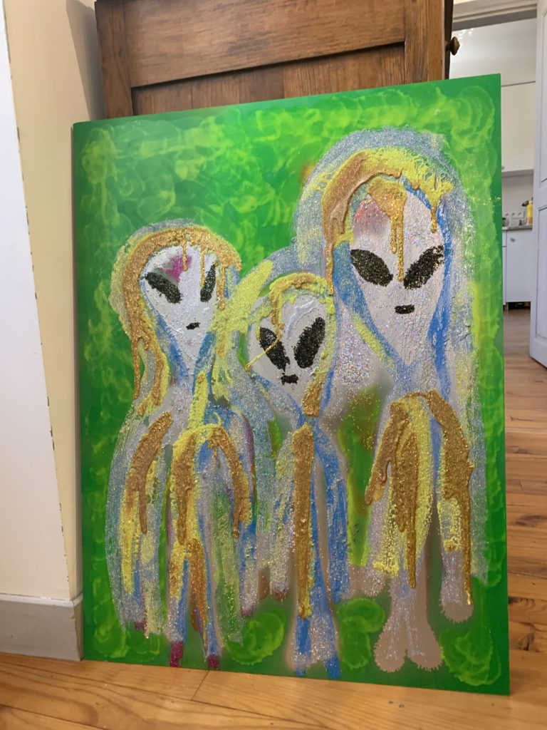 Alien Caca, technique mixte sur panneau, 80 x 60 cm, 2019 :