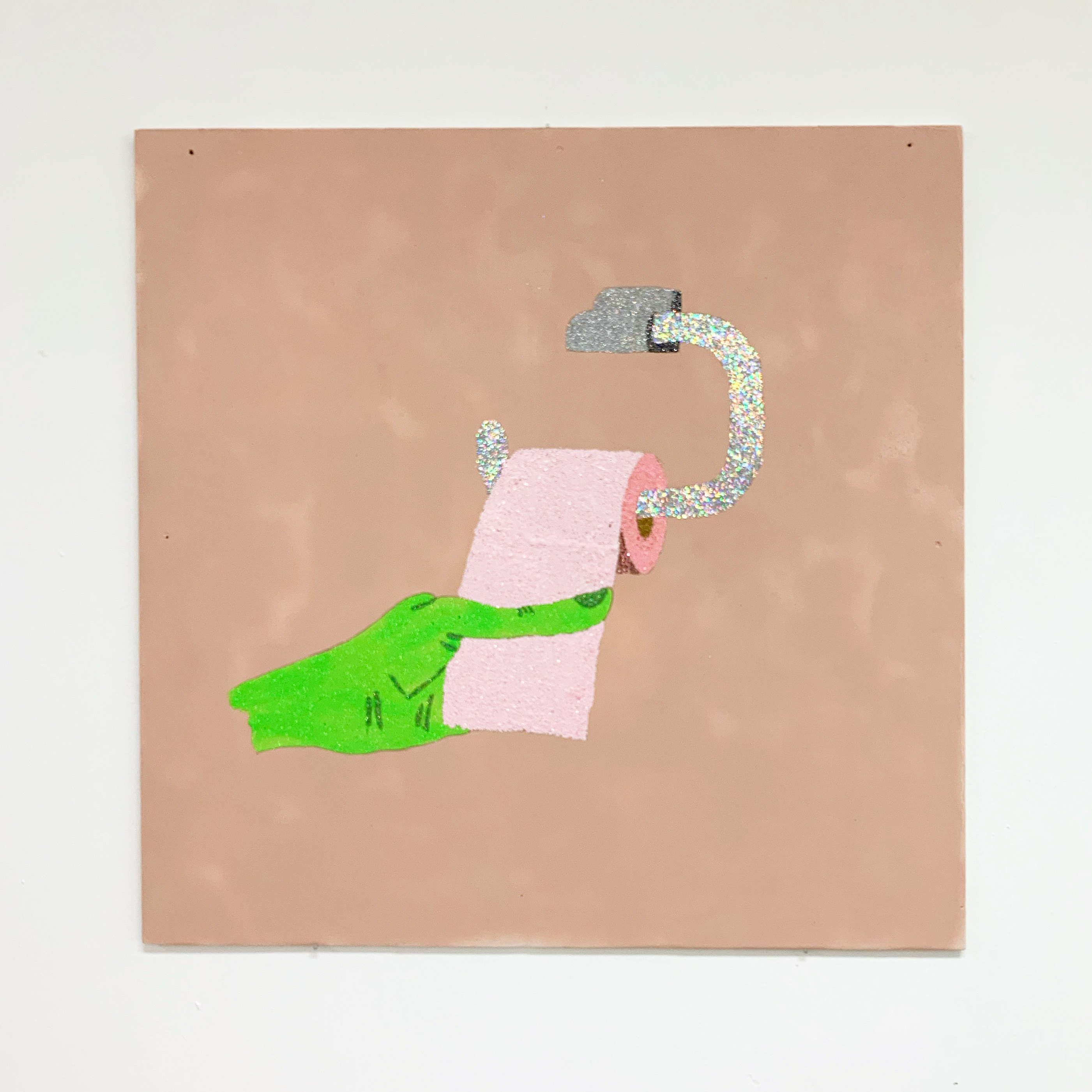 Au bout du rouleau, technique mixte sur panneau, 60 x 60 cm, 2019 :