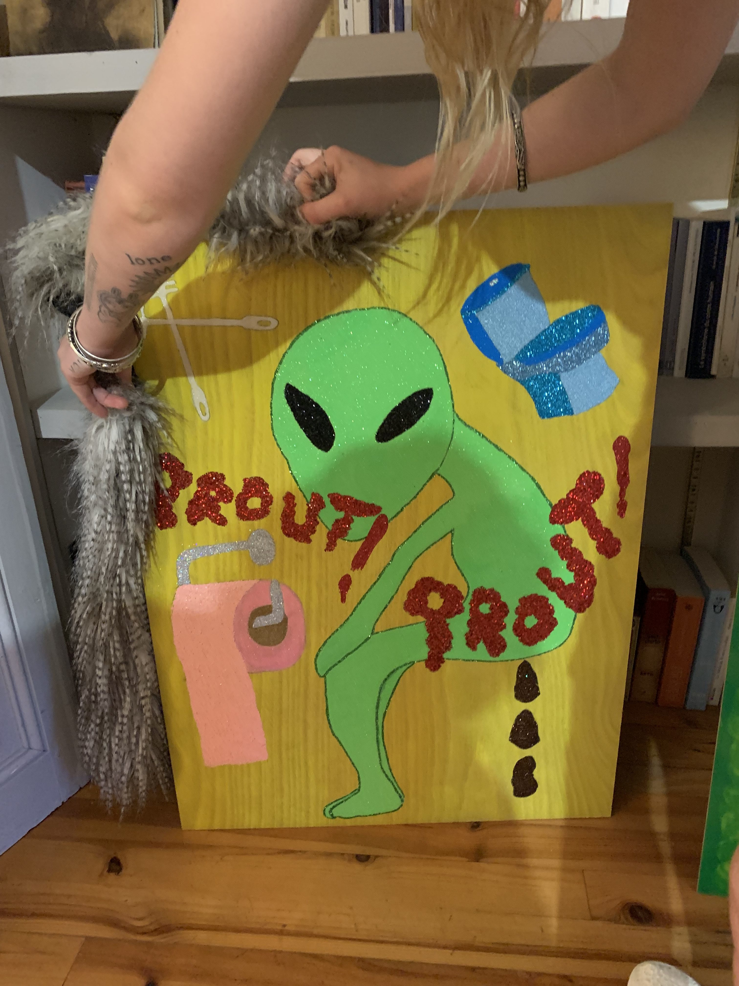 Alien Caca, technique mixte sur panneau, 80 x 60 cm, 2019 :